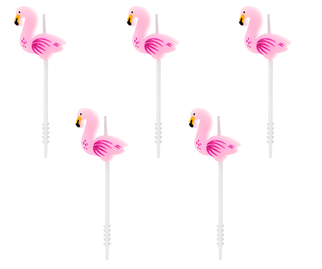 Popis: narodeninové sviečky plameniak v ružovej farbe, výška cca 3 cm. Sada obsahuje 5 kusov sviečok.